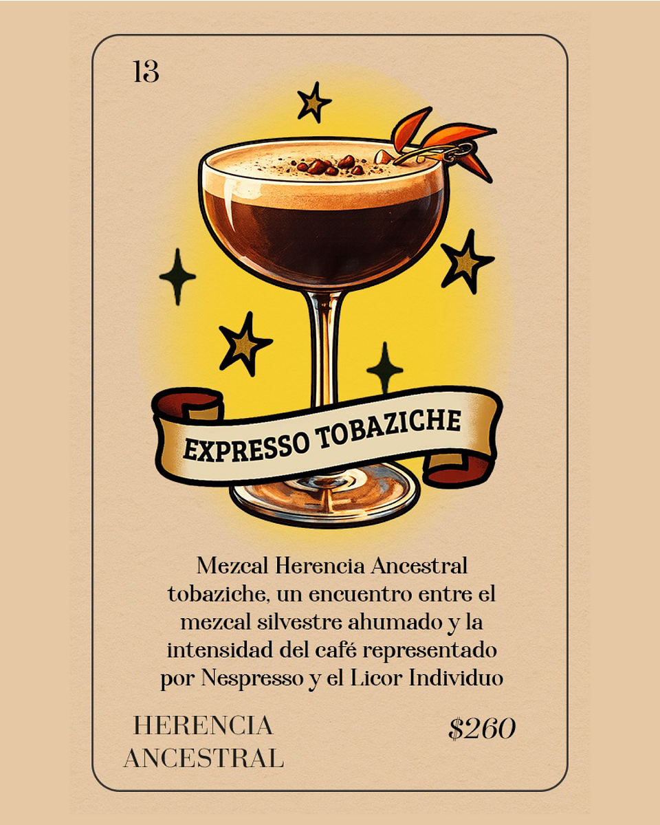 El imaginario visual inspirado en la lotería acompaña este recorrido como un guiño a lo simbólico y lo intuitivo. Cada mezcal sugiere una personalidad distinta, una presencia que se define en el momento mismo en que llega a la mesa. La experiencia se construye desde esa diversidad, desde la libertad de descubrir afinidades personales sin prisa ni expectativas.